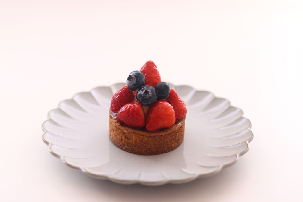 イチゴとブルーベリー、カスタードクリームで仕上げています。